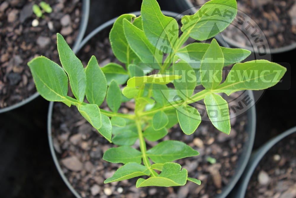Liście ciemnozielone, pierzasto złożone.