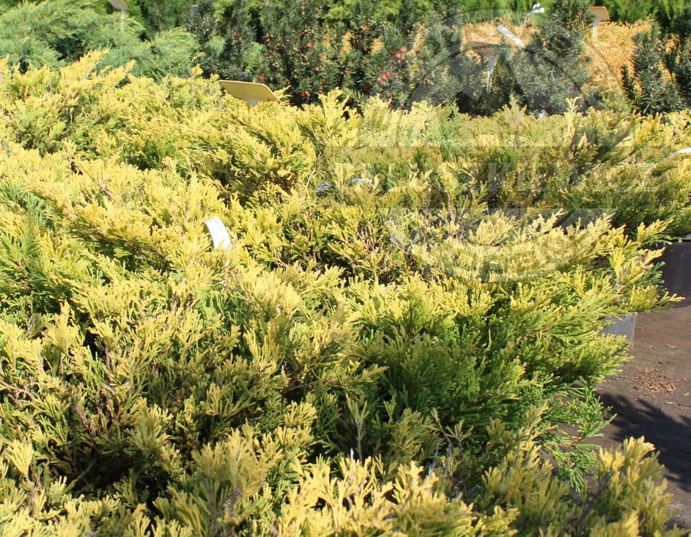 Młode przyrosty złocistożółte, później cytrynowe. Wewnątrz krzewu i od spodu igły jasnozielone.